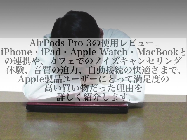 AirPods Pro 3買ってよかった AirPods Pro 3とApple Watch接続 AirPods Pro 3とMacBook接続 AirPods Pro 3レビュー AirPods Pro 3カフェ使用 AirPods Pro 3使い心地 AirPods Pro 3初心者レビュー AirPods Pro 3ノイズキャンセリング AirPods Pro 3Amazon購入 AirPods Pro 3音質 AirPods Pro 3フィット感 AirPods Pro 3価格 AirPods Pro 3騒音対策 AirPods Pro 3満足度 AirPods Pro 3音楽体験 Apple製品連携 AirPods Pro 3自動接続 AirPods Pro 3とiPhone接続 AirPods Pro 3充電確認 AirPods Pro 3とiPad接続 日記