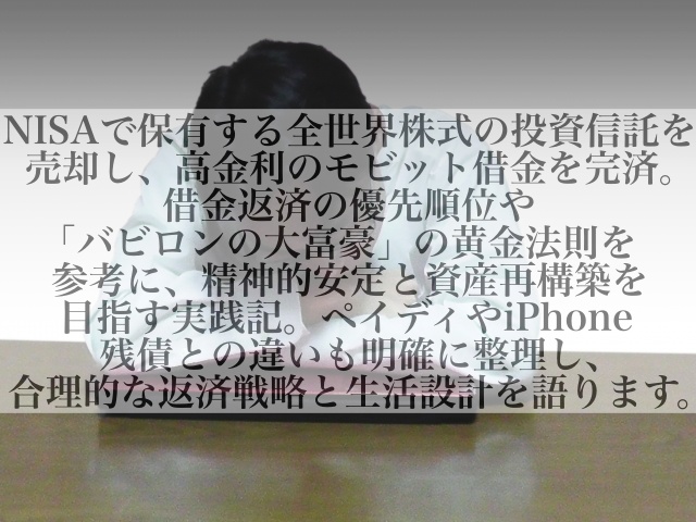 わたしは、NISA全世界株式の投資信託を約20万円を保有しています。しかし、モビットで情報教材を数本、買ったり、AppleのAirPods Pro3を購入したりして、借金が膨らんでしまいました。